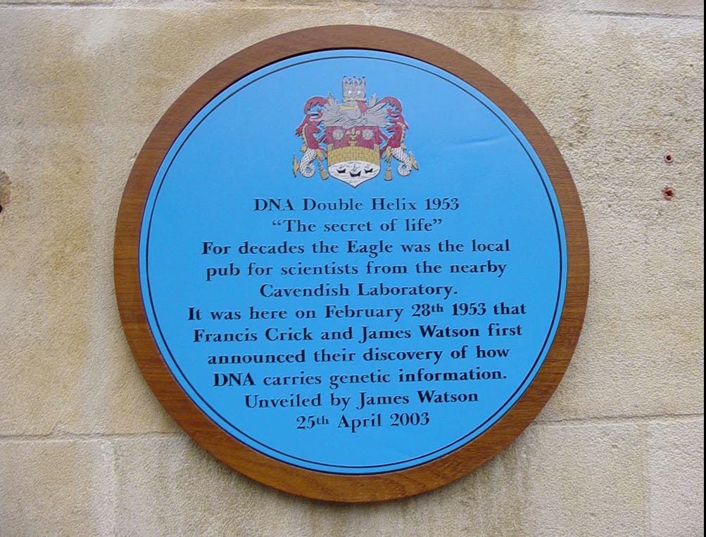 Plaque at The Eagle pub. Credit: Benjah-bmm27 via Wikimedia Commons.