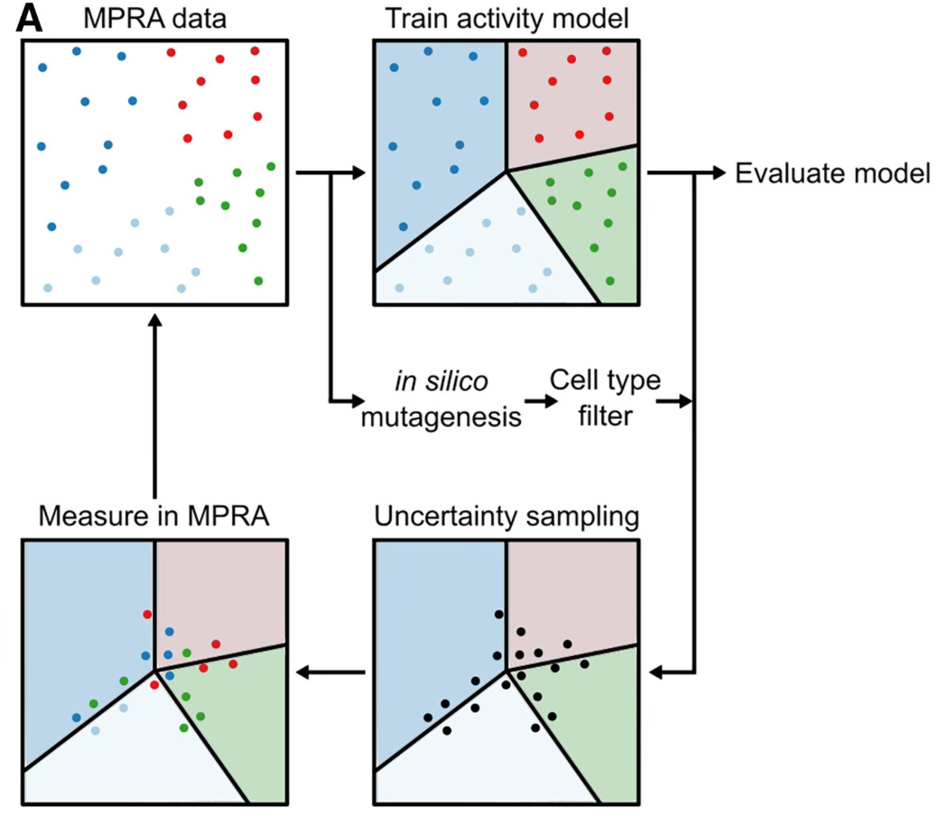 I don’t intend to use too much of this space to discuss my own work, but we have a paper out in Cell Systems this week that, imho, works on an angle in genomics and machine learning that I think is a under-appreciated. The paper is the thesis work of Ryan Friedman, a fantastic former graduate student who is now a postdoc in Cole Trapnell’s lab. Ryan used a technique called active machine learning to iteratively train models of regulatory DNA on successive rounds of functional assays performed in the mouse retina: